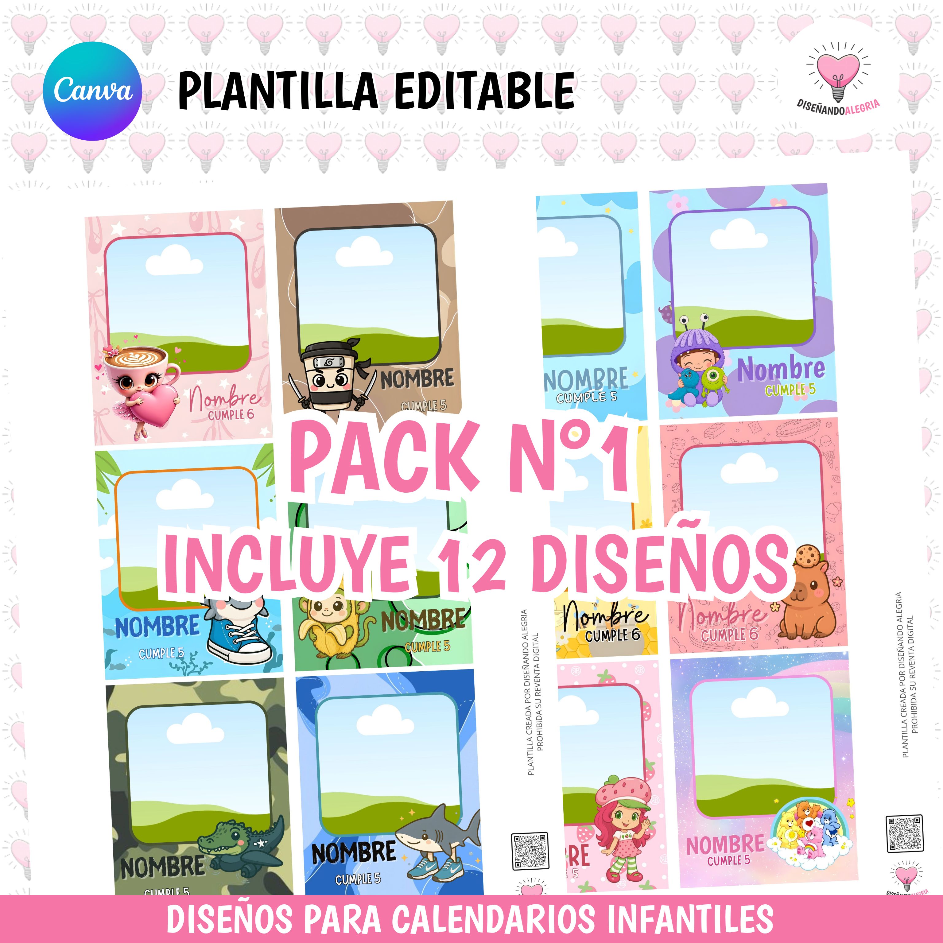 DISEÑOS PARA CALENDARIOS INFANTILES EDITABLE EN CANVA